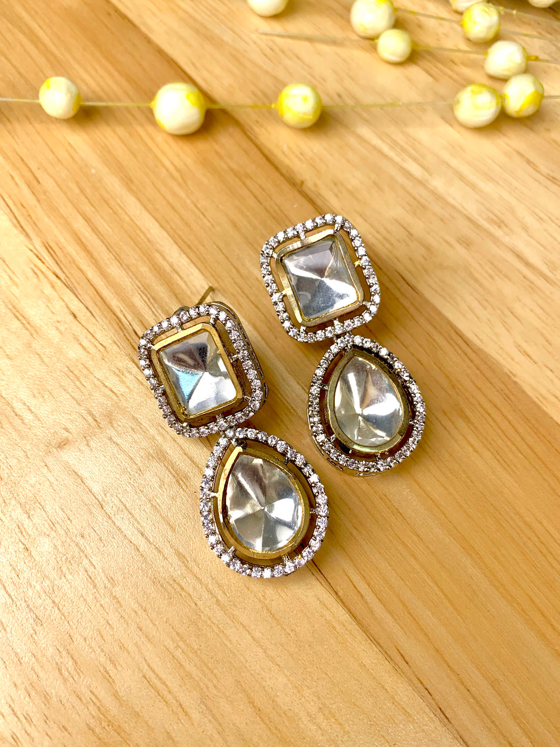 The Celina Drops feature a luminous teardrop kundan stone framed in a radiant halo of...