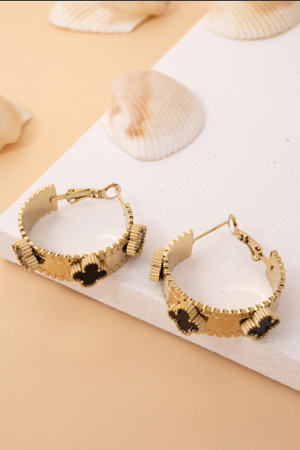 Garnet Earrings – Ayra’s Bold Clover CharmThe Garnet Earrings feature a wide gold-plated hoop design...