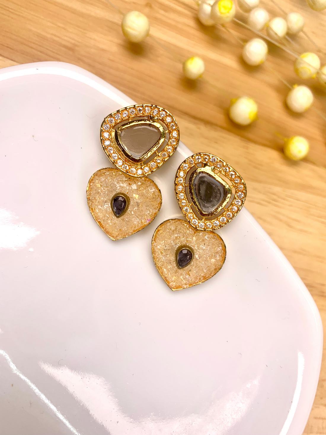 The Aurevia Heart Drops feature a crystal-framed triangular stud paired with textured druzy heart drops,...