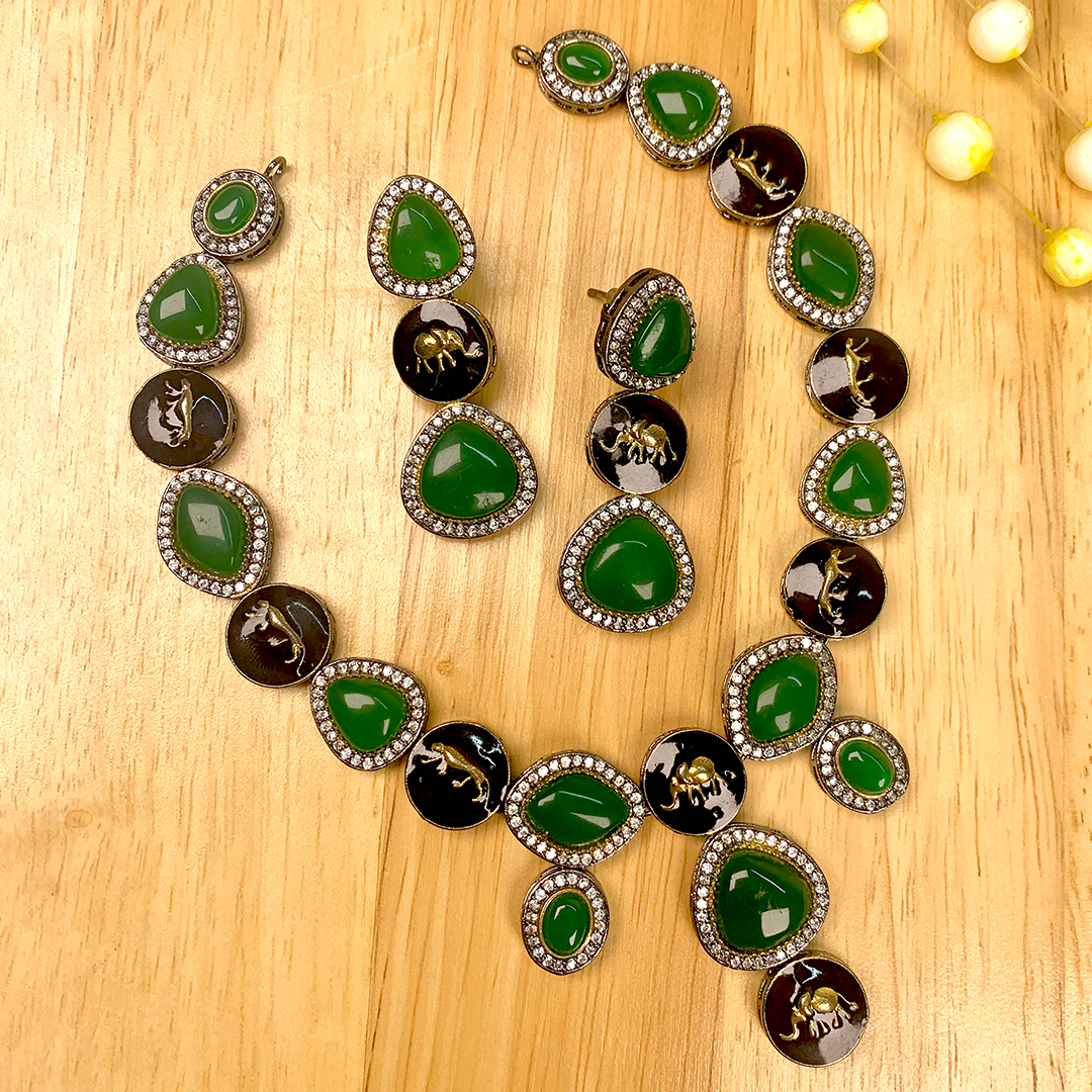 The Emeris Heritage Set is crafted with alternating green and black stones, each framed in...