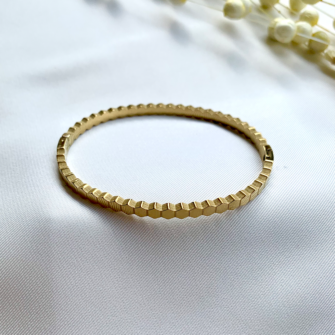 The Coralia Bracelet is crafted with a unique hexagon-cut design in a polished gold finish,...