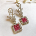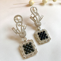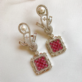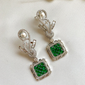 The Amarise Earrings are crafted with a graceful swirl of crystals and pearls, finished with a bold square gemstone centerpiece. Designed to dazzle, they are the perfect statement for festive nights, weddings, or elegant occasions.