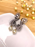 The Elara Pearl Swirls feature a radiant floral crystal motif that flows into a graceful swirl, fully encrusted with shimmering stones, and finished with a luminous pearl drop. A perfect blend of elegance and festivity, ideal for weddings and celebrations.