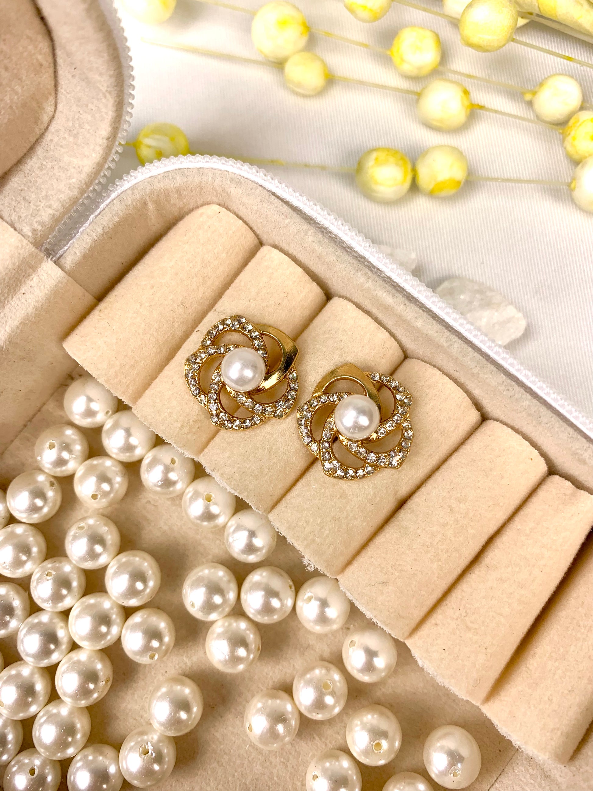 The Floral Blooms feature a luminous kundan stone at the center, encircled by sparkling crystals arranged in a floral pattern. Radiating grace and sophistication, these studs are versatile enough for both day wear and special evenings.
