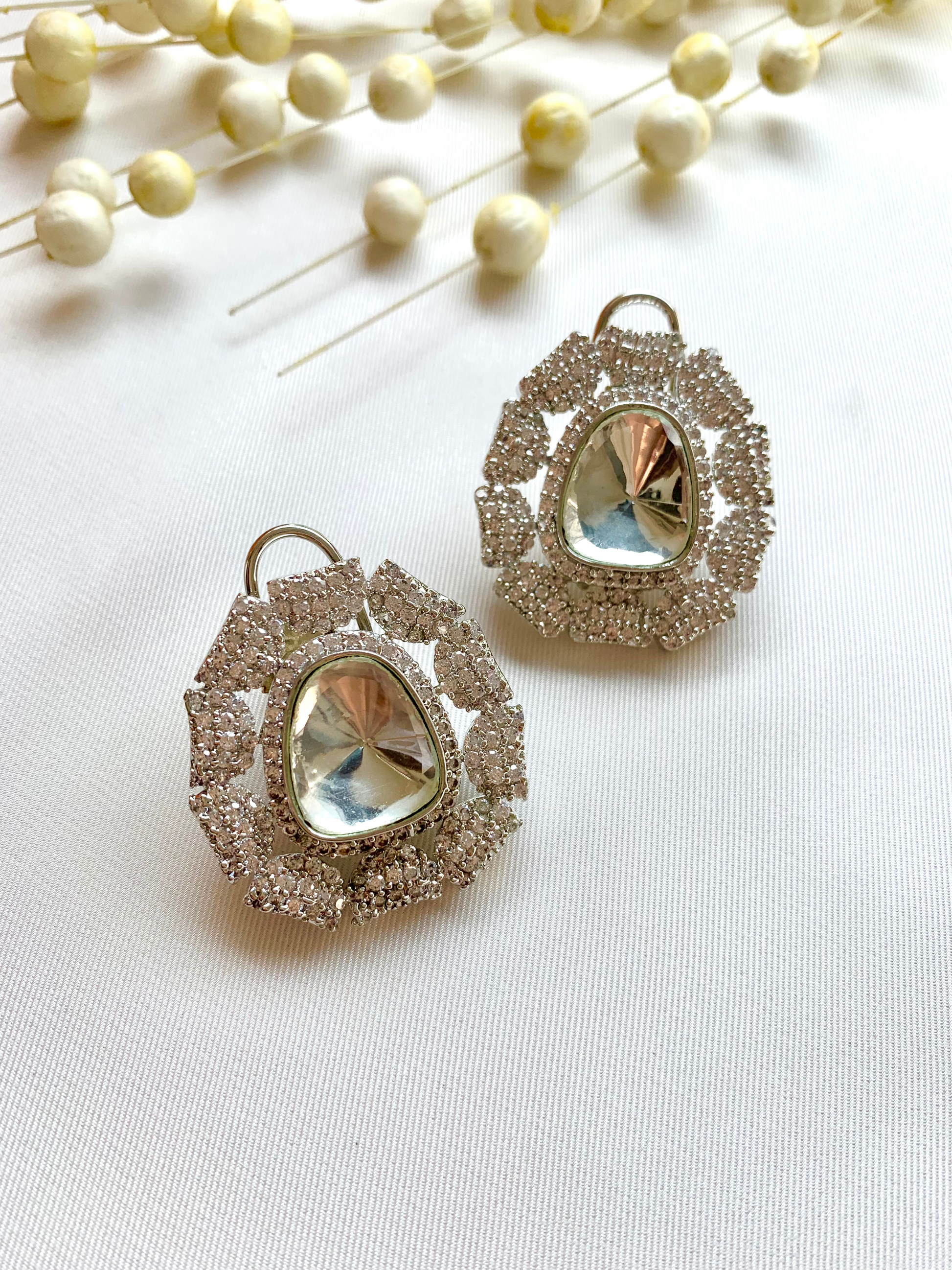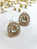 The Lunara Studs are crafted with a luminous cushion-cut crystal at the center, encircled by a halo of finely set sparkling stones in a floral-inspired design. A perfect blend of elegance and brilliance, these studs are ideal for both everyday sophistication and evening glamour.