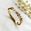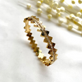 The Maven Bracelet is crafted in a polished gold finish with a bold geometric pattern, accented by a fine line of sparkling stones. Its modern design with a touch of brilliance makes it a statement piece that stands out while remaining easy to style.