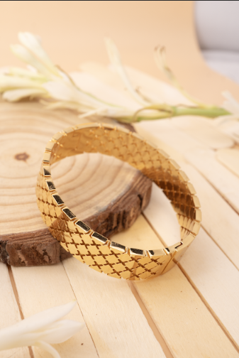 The Nova Bracelet is a bold statement of modern style. Crafted from premium stainless steel and plated in radiant 18K gold, it features a striking criss-cross lattice pattern that reflects light beautifully with every movement.