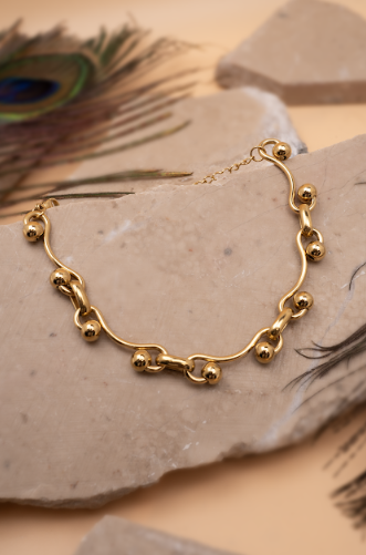 The Rhea Bracelet brings a modern, whimsical twist to classic gold jewelry. Featuring a wavy chain adorned with polished gold beads, this piece is crafted from premium stainless steel and plated in radiant 18K gold for a lustrous finish.