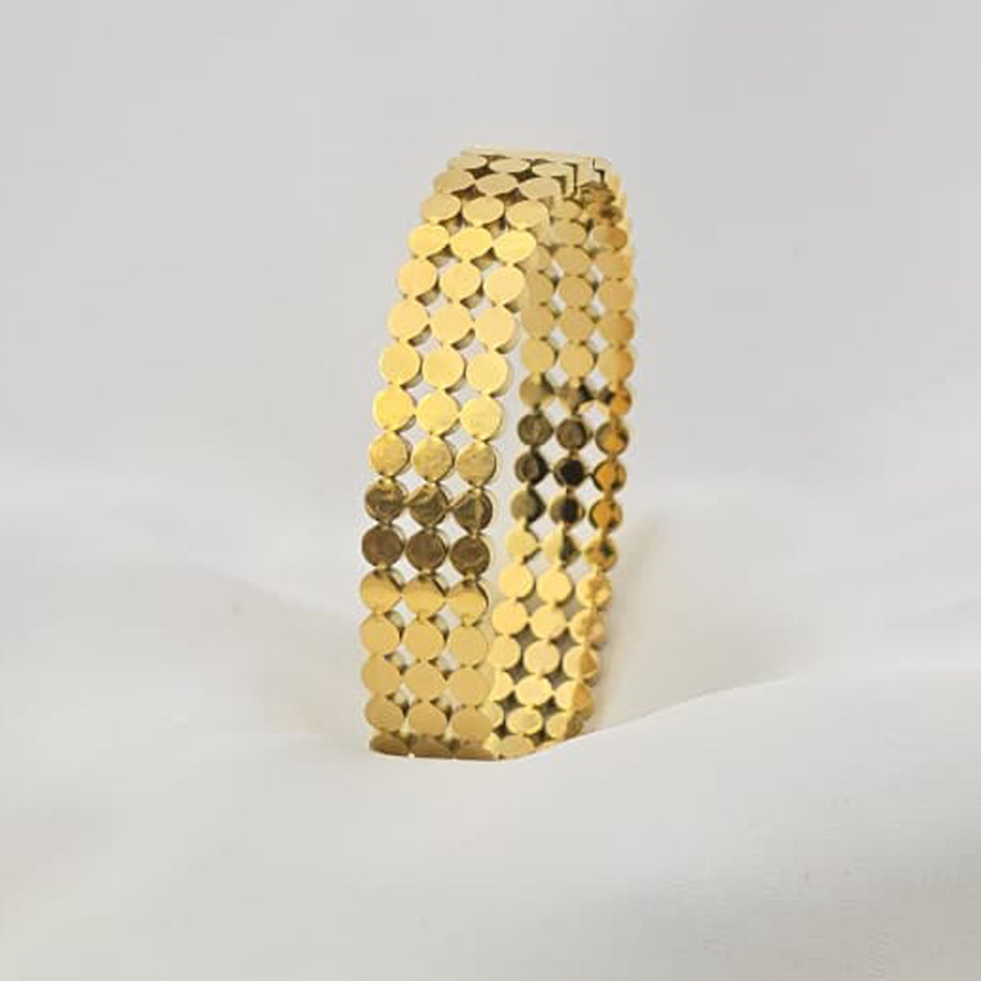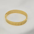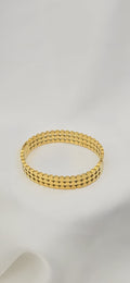 Sculptural and refined, The Sorrento Bangle is designed with a distinctive beaded texture in polished gold plating, creating dimension and subtle brilliance. Its clean silhouette and modern detailing make it a versatile statement piece that elevates both everyday and evening looks.