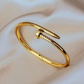 Defiant yet refined, The Stanton Bracelet turns an everyday object into an icon of style. Crafted in polished gold plating, its sleek nail-inspired design wraps elegantly around the wrist, embodying strength, individuality, and modern edge.